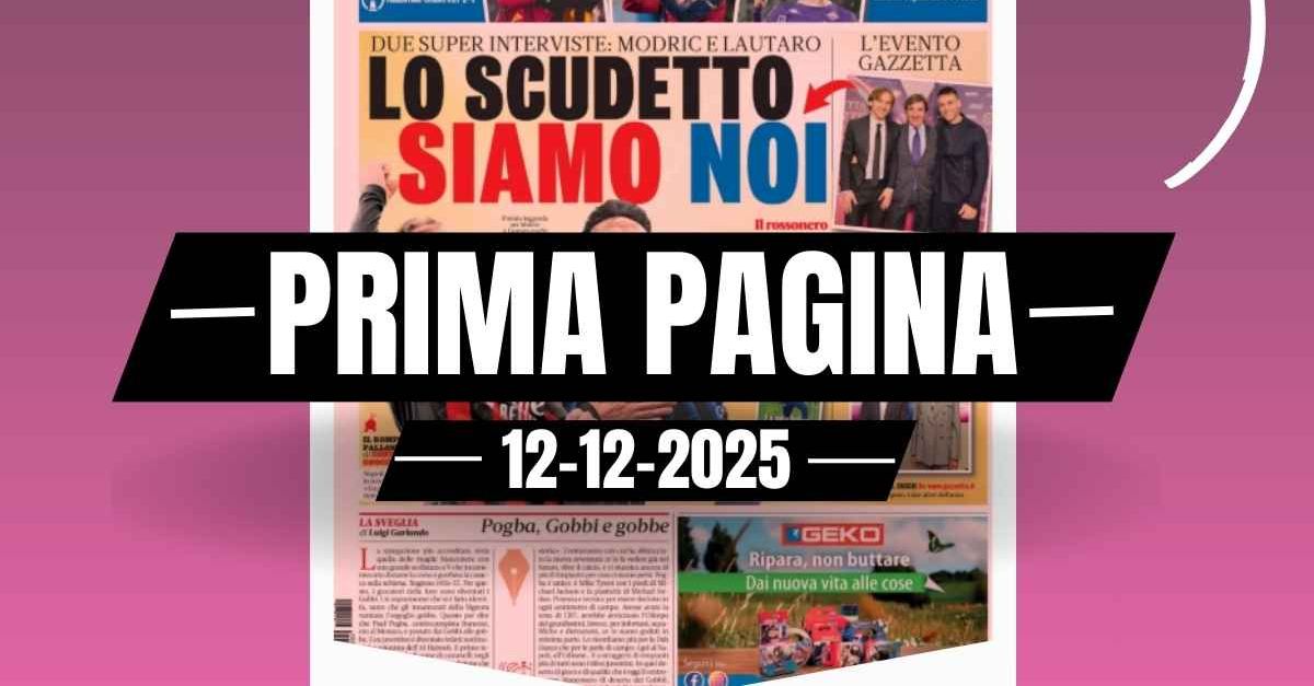 Questa è la prima pagina de 'La Gazzetta dello Sport', in edicola oggi, venerdì 12 dicembre 2025. Diamo un’occhiata alle principali novità sul mondo dello sport e in particolare del calcio, cercando di evidenziare le notizie sul Milan. La prima pagina de 'La Gazzetta dello Sport' apre con le parole di Modric e Lautaro Martinez. Lo Scudetto siamo noi. L'Italia fa il pieno di vittoria in Europa League e in Conference League. Ecco la prima pagina de 'La Gazzetta dello Sport'. 🔗 Leggi su Pianetamilan.it