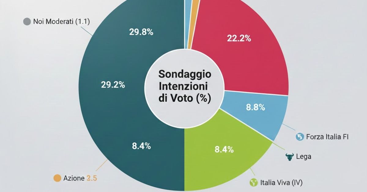 AGI - Ultimo appuntamento " regolare " di questo 2025 con la Supermedia (a cui seguirà, dopo Natale, il consueto aggiornamento di fine anno con i " saldi " dei partiti tra inizio e fine 2025 ). Il quadro complessivamente è ancora una volta molto stabile rispetto a quello emerso dopo le rilevazioni successive alle elezioni regionali in Campania, Puglia e Veneto. Si segnala un rimbalzo positivo (+0,4%) di Azione, molto attivo in questa fase in cui si discute molto di guerra in Ucraina. Supermedia liste. FDI 29,8 (-0,1) PD 22,2 (+0,1) M5S 12,2 (-0,3) Forza Italia 8,8 (-0,2) Lega 8,4 (-0,1) VerdiSinistra 6,4 (-0,1) Azione 3,5 (+0,4) Italia Viva 2,5 (-0,1) +Europa 1,7 (+0,1) Noi Moderati 1,1 (+0,1)* non rilevato da Tecné. 🔗 Leggi su Agi.it