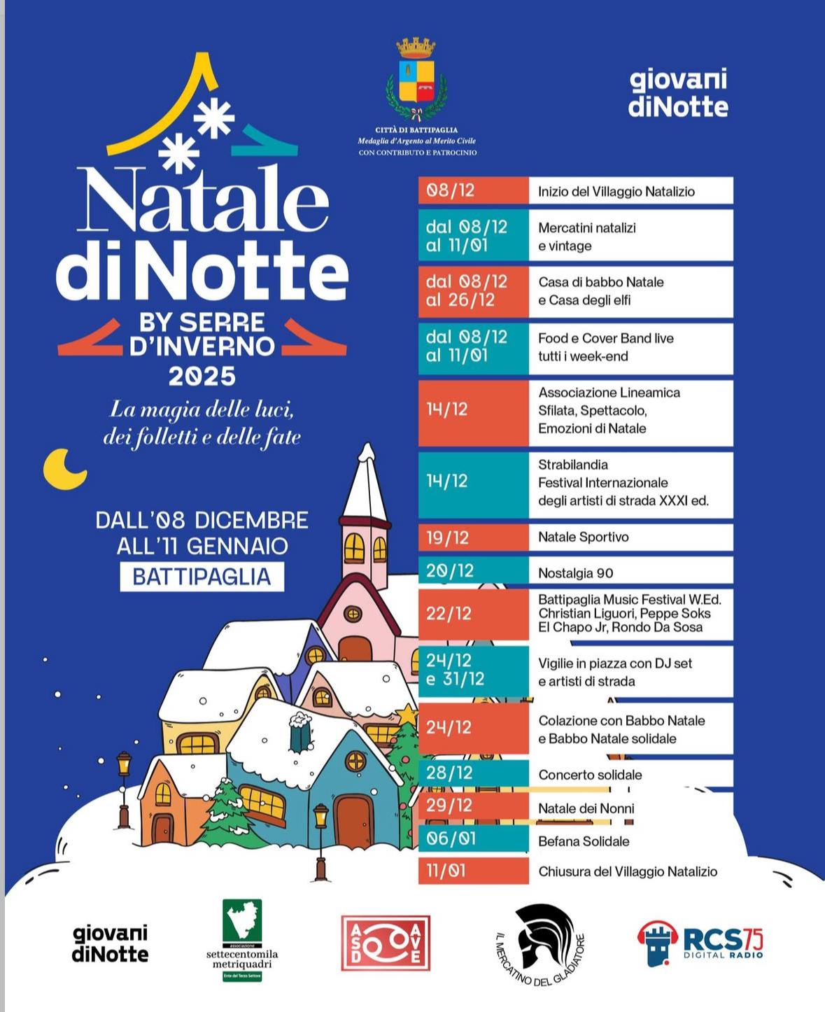 Dall’8 dicembre all’11 gennaio la città si trasforma in un villaggio natalizio a cielo aperto tra mercatini, musica, spettacoli e solidarietà. Dall’8 dicembre all’11 gennaio Battipaglia si trasforma in un grande villaggio natalizio a cielo aperto con “Natale di Notte – Serre d’Inverno 2025”, un ricco cartellone di eventi pensato per famiglie, giovani e visitatori di tutte le età. Un’iniziativa che unisce tradizione, spettacolo, musica, solidarietà e intrattenimento, patrocinata dal Comune di Battipaglia e promossa dal progetto giovani diNotte. La città sarà avvolta da un’atmosfera fiabesca fatta di luci, installazioni scenografiche, mercatini, spettacoli itineranti e grandi appuntamenti musicali, confermandosi uno dei poli natalizi più attrattivi del territorio. 🔗 Leggi su Zon.it