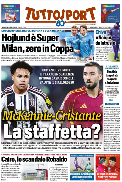 Le prime pagine dei quotidiani di oggi 15 dicembre: la rassegna stampa; Le prime pagine dei quotidiani di oggi 14 dicembre: la rassegna stampa; Prima la Juve poi il mercato. Bivio Dybala: dentro o fuori?; In Europa Napoli KO, sorride la Juventus - La rassegna stampa dell'11 dicembre 2025.
