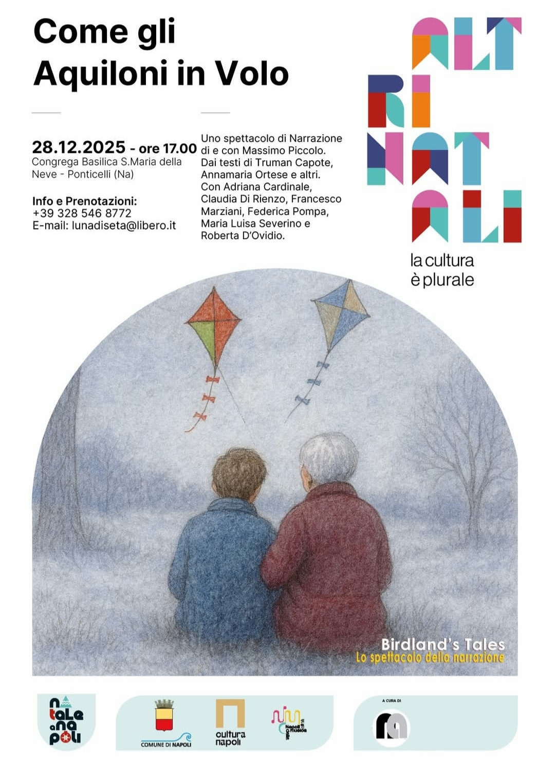 SPETTACOLI - "Come gli aquiloni in volo" di Massimo Piccolo alla Basilica di Santa Maria della Neve a Ponticelli - Birdland’s Tales torna con un nuovo capitolo dedicato al Natale e alla sua magia più intima, nell’ambito della rassegna “Altri Natali 2025”. napolimagazine.com