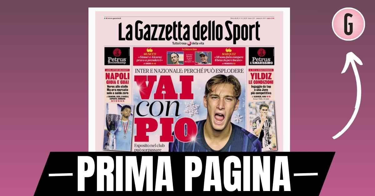 La prima pagina della Gazzetta dello Sport in edicola oggi, mercoledì 24 dicembre 2025. Rassegna con news su calcio, Milan e calciomercato. 🔗 Leggi su Pianetamilan.it