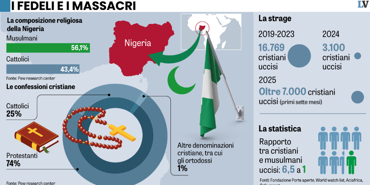 Parte il coro di chi minimizza la persecuzione. Ma i dati sono chiari: nel 2025, l’82% dei fedeli uccisi o rapiti era in Nigeria. Pur di non darla vinta a Donald Trump, quasi quasi fanno diventare la Nigeria un Paese sicuro. «Nessuna prova che i cristiani siano uccisi più dei musulmani», titolava ieri l’Ansa, citando le analisi dei «gruppi che monitorano la violenza» nel Paese centrafricano. «Ma i cattolici sono davvero nel mirino?», si domandava il Corriere, rispolverando un pezzo del 27 novembre che riprendeva l’agenzia Dire («I sequestri non sarebbero legati a ostilità di carattere religioso», si leggeva, semmai «aumentano le persone che aderiscono alle bande armate per ragioni economiche») e il Financial Times, secondo cui il governo di Nairobi «non riesce a proteggere nessuno, a prescindere dalla fede». 🔗 Leggi su Laverita.info