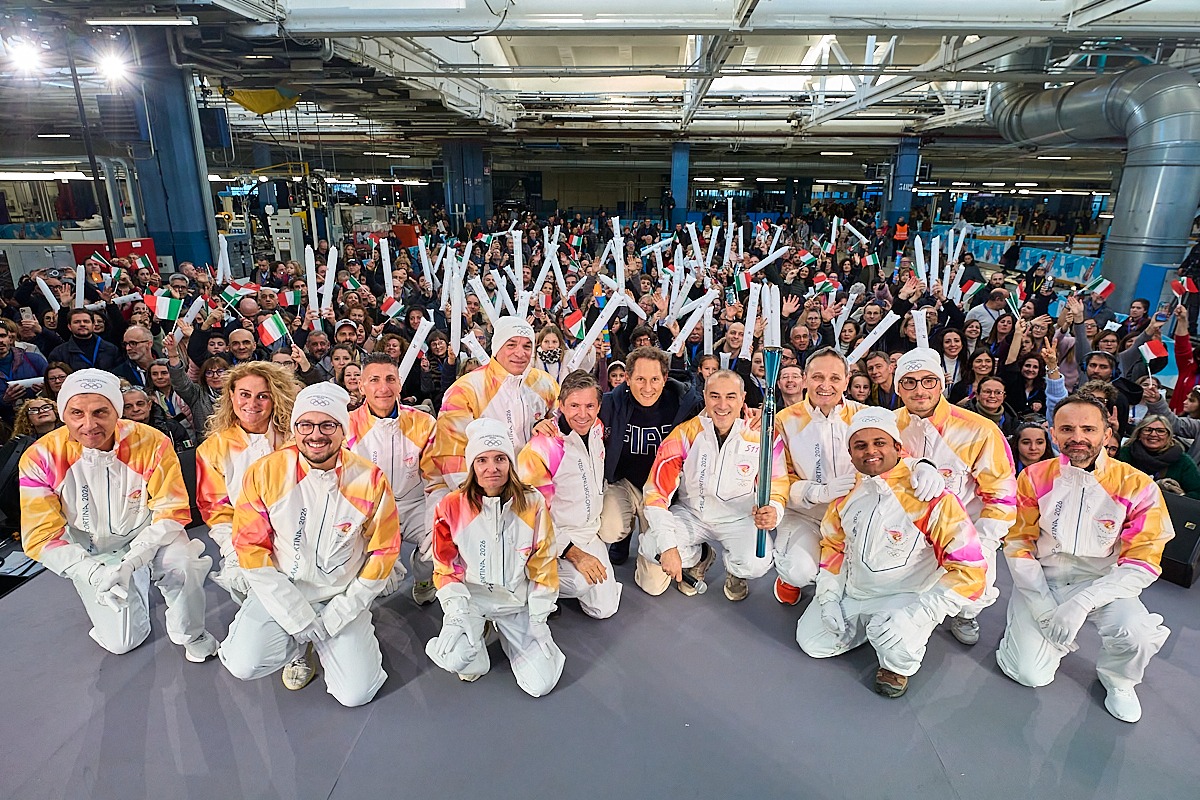 © Lapresse.it - Milano-Cortina 2026, Fiat accende la Fiamma Olimpica a Mirafiori. Elkann: “Spirito che unisce Azienda e Paese”