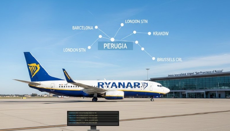 Ryanair ha annunciato le rotte estive 2026 dall’aeroporto di Perugia “San Francesco d’Assisi”. Il network comprende dieci destinazioni, tra cui Barcellona, Londra Stansted, Cracovia, Malta e Bruxelles Charleroi, con circa ottanta voli settimanali. La programmazione offre collegamenti nazionali e internazionali, consolidando la posizione dell’aeroporto umbro come punto di accesso al continente europeo per la prossima stagione estiva.