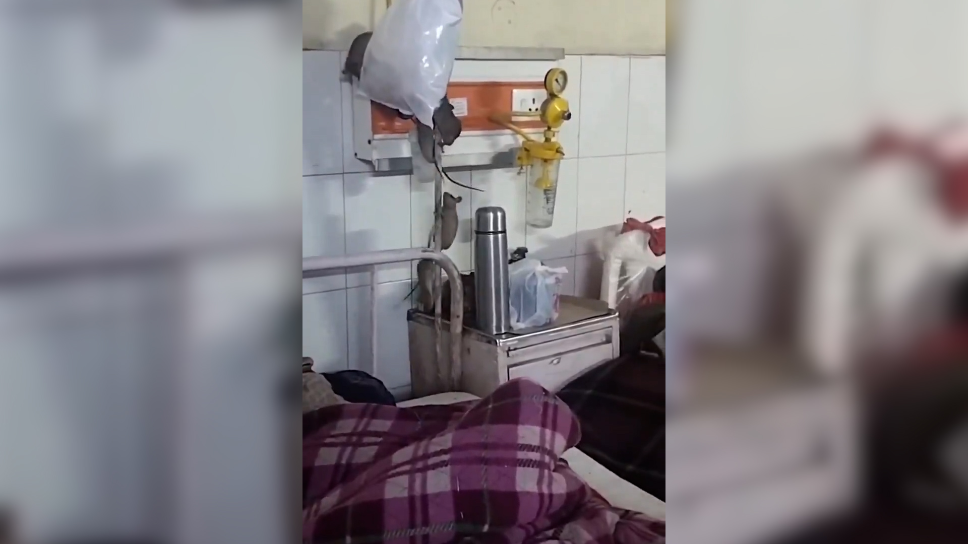 © Ilfattoquotidiano.it - Topi si arrampicano sull’asta porta flebo di fianco al letto del malato: il video choc da un ospedale in India