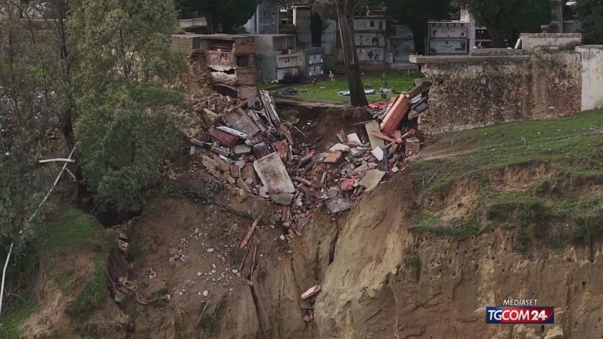 © Tgcom24.mediaset.it - Maltempo, frana in un cimitero calabrese. Le bare cadono in un burrone