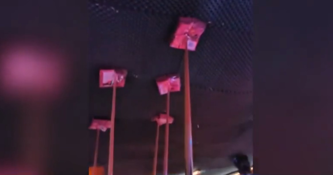 Immagini choc dal Le Constellation: i pannelli del locale tenuti da stecche da biliardo