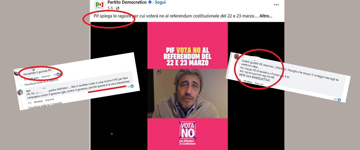 Il Partito Democratico festeggia annunciando che anche Pif si sarebbe schierato contro il referendum, ma il web non ci sta. In rete si ride e si fa notare che il noto giurista di fama internazionale non ha mai espresso pubblicamente questa posizione. La confusione tra personaggi storici e attuali crea scompiglio e lascia intendere che si cerca di usare un’immagine popolare per influenzare l’opinione pubblica. La vicenda mette in evidenza come le comunicazioni ufficiali possano essere distorte o fraintese, generando confusione tra gli utenti.