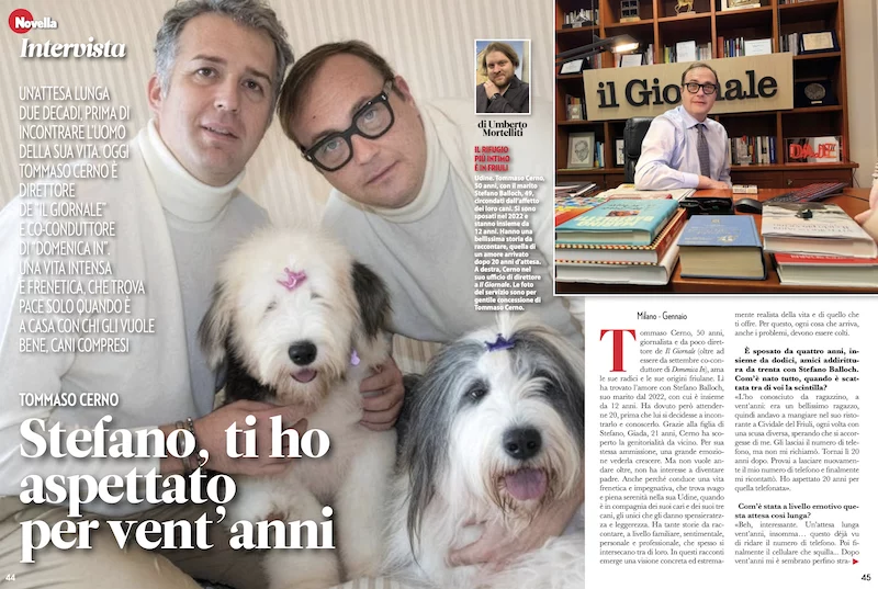 Tommaso Cerno: il celebre giornalista apre le porte della sua vita privata, raccontando il lungo corteggiamento al marito, il legame. Tommaso Cerno: il celebre giornalista apre le porte della sua vita privata, raccontando il lungo corteggiamento al marito, il legame con la figlia acquisita e le ferite di un passato difficile Tommaso Cerno, 50 anni, giornalista e da poco direttore de Il Giornale (oltre ad essere da settembre co-conduttore di Domenica In), ama le sue radici e le sue origini friulane. Lì ha trovato l’amore con Stefano Balloch, suo marito dal 2022, con cui è insieme da 12 anni. Ha dovuto però attenderne 20, prima che lui si decidesse a incontrarlo e conoscerlo. 🔗 Leggi su Novella2000.it