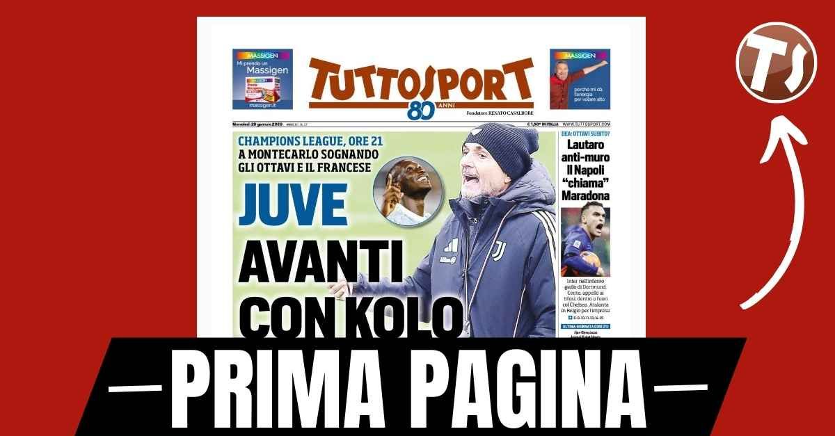 Questa è la prima pagina di 'Tuttosport', in edicola oggi, mercoledì 28 gennaio 2026. Diamo un’occhiata alle principali novità sul mondo dello sport e in particolare del calcio, cercando di evidenziare le notizie sul Milan. 'Tuttosport' oggi in edicola, in prima pagina, apre parlando della duplice missione della Juventus. La prima, per la 8^ e ultima giornata della Fase Campionato della Champions League 2025-2026, stasera alle ore 21:00, è quella di battere a domicilio il Monaco nella speranza di qualificarsi direttamente agli ottavi di finale del torneo evitando i playoff. La seconda è quella di riportare in bianconero il centravanti francese Randal Kolo Muani, attaccante di proprietà del PSG attualmente in prestito al Tottenham. 🔗 Leggi su Pianetamilan.it