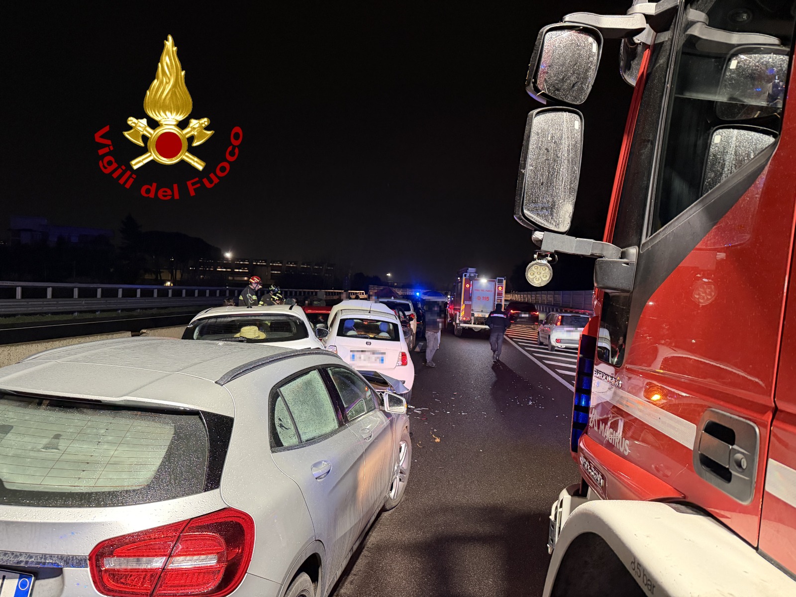 Maxi-tamponamento in autostrada, coinvolte cinque auto: i Vigili del fuoco soccorrono sette persone