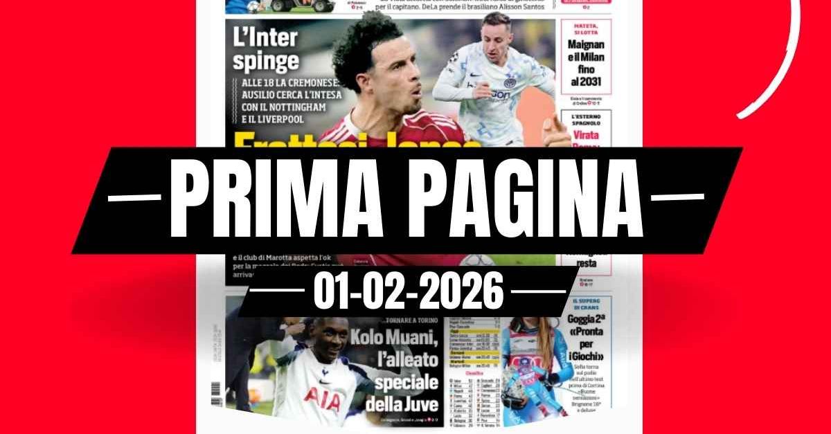 Questa è la prima pagina di 'Corriere dello Sport', in edicola oggi, domenica primo febbraio 2026. Diamo un’occhiata alle principali novitĂ sul mondo dello sport e in particolare del calcio, cercando di evidenziare le notizie sul Milan. La prima pagina del 'Corriere dello Sport' apre con il calciomercato dell'Inter: Frattesi-Jones a oltranza. Napoli contro tutto, battuta la Fiorentina. Maignan e il Milan fino al 2031. Virata Roma spunta Zaragoza. Lazio, Romagnoli resta. Kolo Muani l'alleato della Juve. Ecco la prima pagina del 'Corriere dello Sport'. 🔗 Leggi su Pianetamilan.it