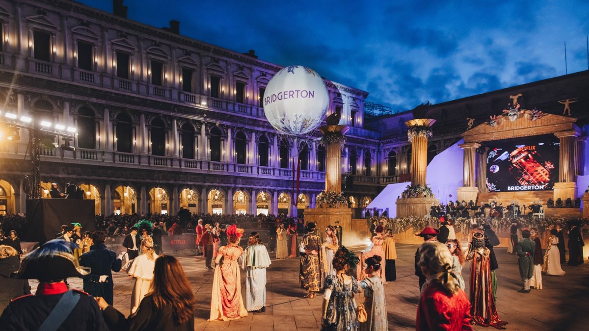 Bridgerton 4 celebrato al Carnevale di Venezia con un ballo in Piazza