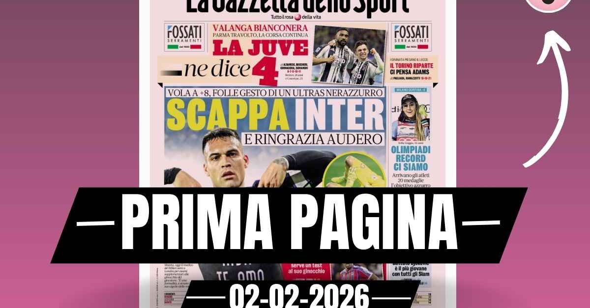 Questa è la prima pagina de 'La Gazzetta dello Sport', in edicola oggi, lunedì 2 febbraio 2026. Diamo un’occhiata alle principali novità sul mondo dello sport e in particolare del calcio, cercando di evidenziare le notizie sul Milan. 'La Gazzetta dello Sport' oggi in edicola, in prima pagina, apre con la vittoria esterna (2-0) dell'Inter in casa della Cremonese con i gol, tutti nel primo tempo, di Lautaro Martínez e Piotr Zielinski. Partita terminata regolarmente nonostante il petardo arrivato addosso a Emil Audero, portiere grigiorosso, dal settore dei tifosi ospiti. I nerazzurri di Cristian Chivu scappano via in vetta alla classifica. 🔗 Leggi su Pianetamilan.it