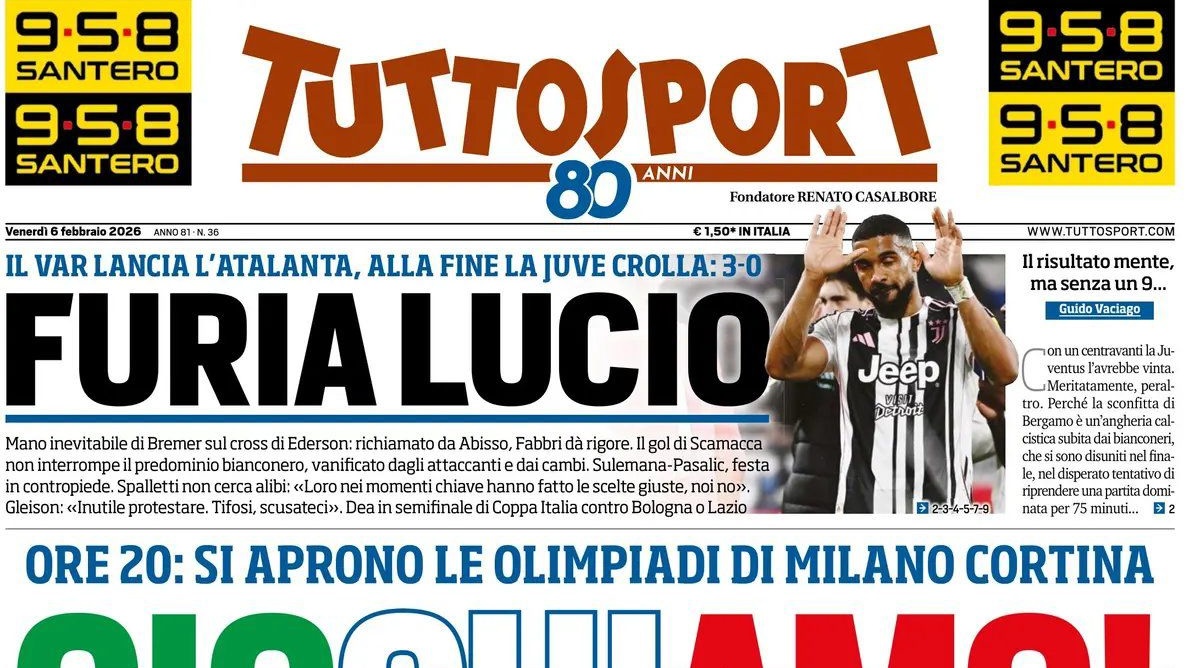La Juventus torna protagonista sulle prime pagine dei giornali sportivi di oggi, venerdì 6 febbraio. Le principali testate italiane dedicano ampio spazio alla squadra, tra analisi, rumors e aggiornamenti sulle ultime vicende di casa bianconera. I tifosi si preparano a seguire da vicino le notizie che emergono, mentre i quotidiani delineano un quadro sempre più dettagliato delle sfide e delle strategie della Juventus.