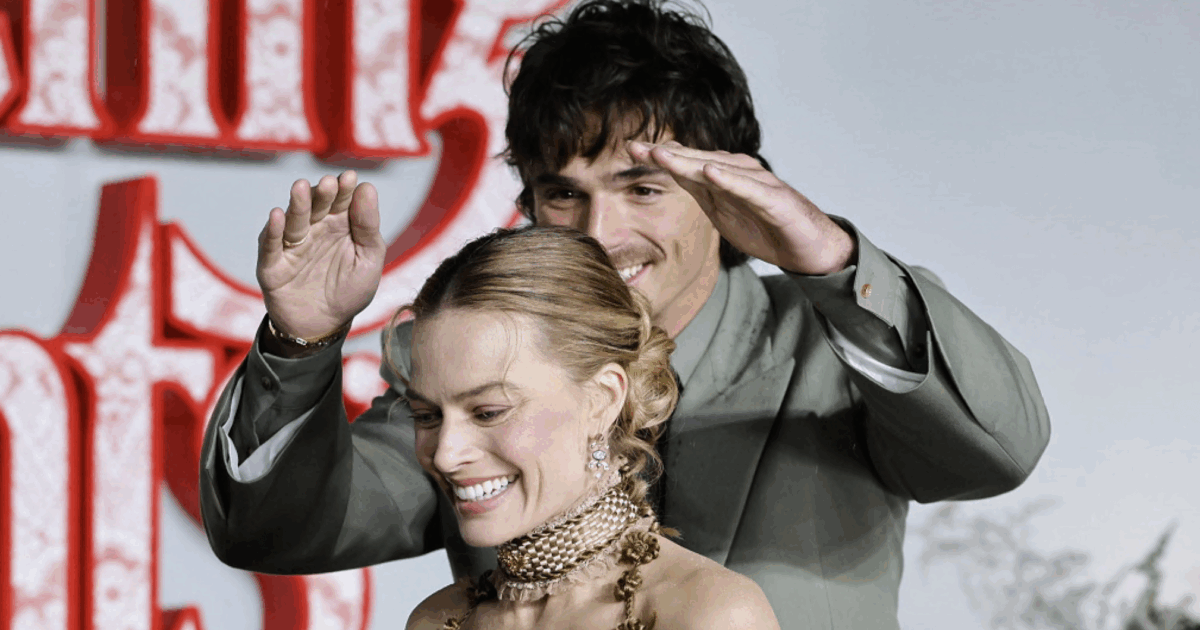 © Ilfattoquotidiano.it - Jacob Elordi si trasforma in “ombrello umano” per Margot Robbie: l’intesa da “Cime Tempestose” al red carpet scatena il gossip (inutilmente)