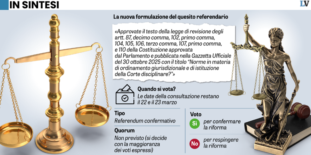 Argomenti discussi: Referendum, Mattarella firma il decreto del governo: confermate le date del 22-23 marzo; Referendum Giustizia, il governo tira dritto: integrato il quesito ma la data resta 22-23 marzo; Referendum Giustizia, il Cdm integra quesito dopo Cassazione: la data resta il 22-23 marzo; Referendum Giustizia, Mattarella firma: confermate le date. Ma il Pd: Prepotenza istituzionale.