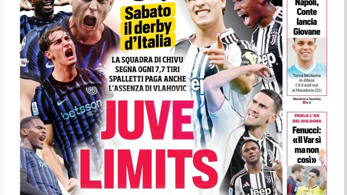 Sabato il derby d'Italia, il Corriere dello Sport oggi in prima pagina: Juve limitsJuve limits: questo è il titolo principale della prima pagina di oggi del Corriere dello Sport. Sabato il derby d'Italia: la squadra. tuttomercatoweb.com