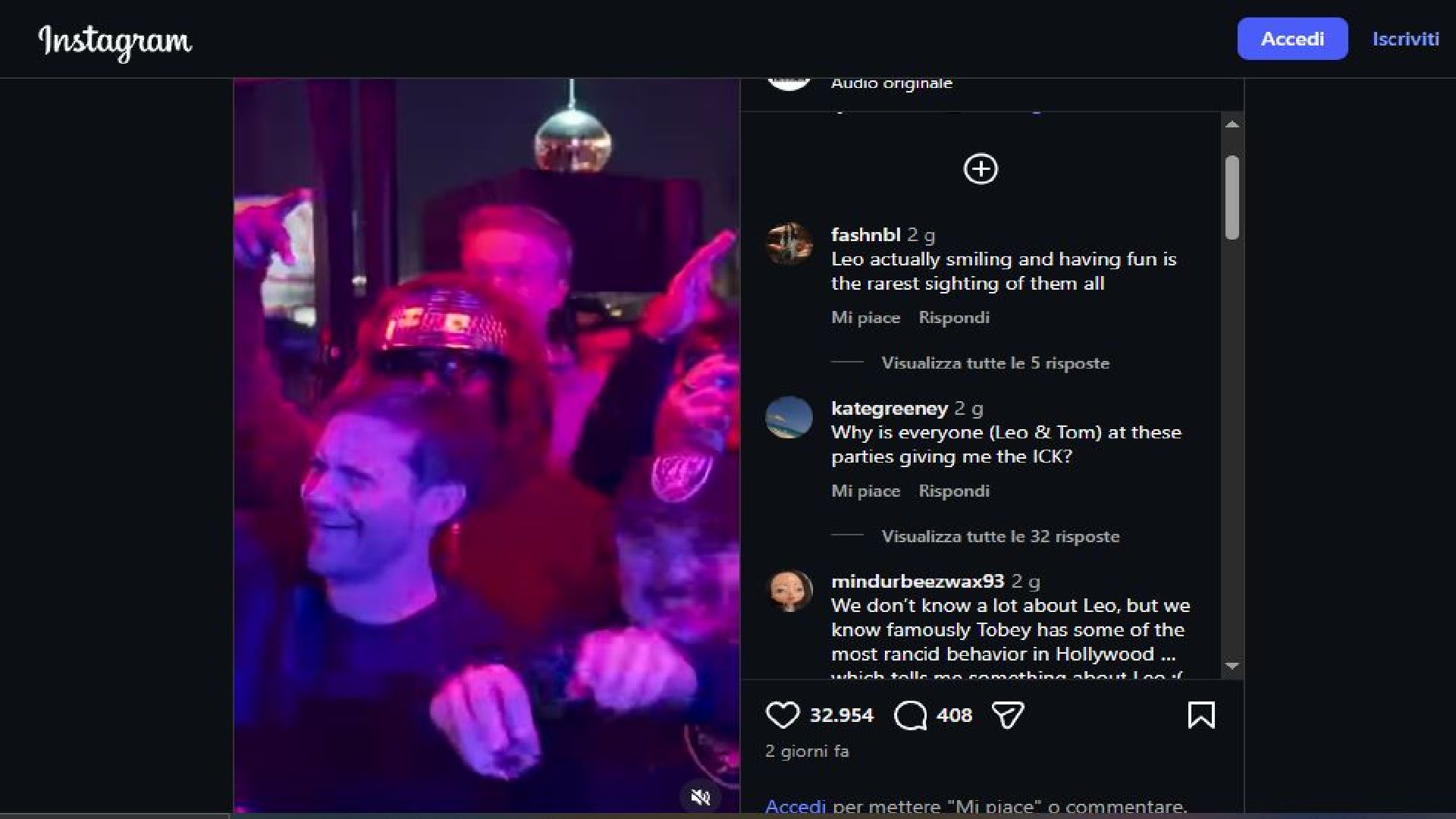 Leonardo DiCaprio e Tobey Maguire si scatenano al Super Bowl party: il video diventa virale