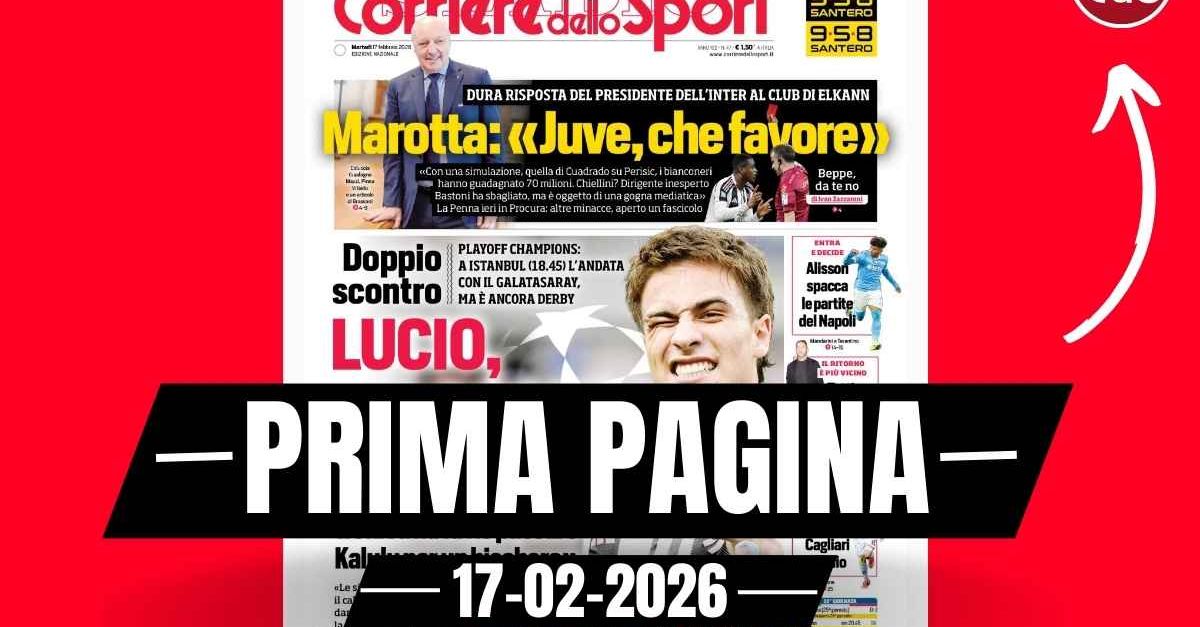 Questa è la prima pagina del 'Corriere dello Sport', in edicola oggi, martedì 17 febbraio 2026. Diamo un’occhiata alle principali novità sul mondo dello sport e in particolare del calcio, cercando di evidenziare le notizie sul Milan. Il 'Corriere dello Sport' oggi in edicola, in prima pagina, evidenzia il 'doppio scontro' delle ultime ore in casa Juventus. Da un lato, quello - dialettico - tra l'allenatore dei bianconeri, Luciano Spalletti e quello dei nerazzurri, Cristian Chivu, sulle polemiche dell'ultimo confronto in campionato e sull'interpretazione del caso Pierre Kalulu - Alessandro Bastoni. 🔗 Leggi su Pianetamilan.it