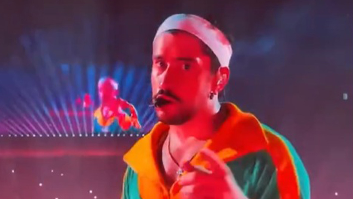 Bad Bunny scivola e cade durante un concerto, ma i fan mandano avanti lo show
