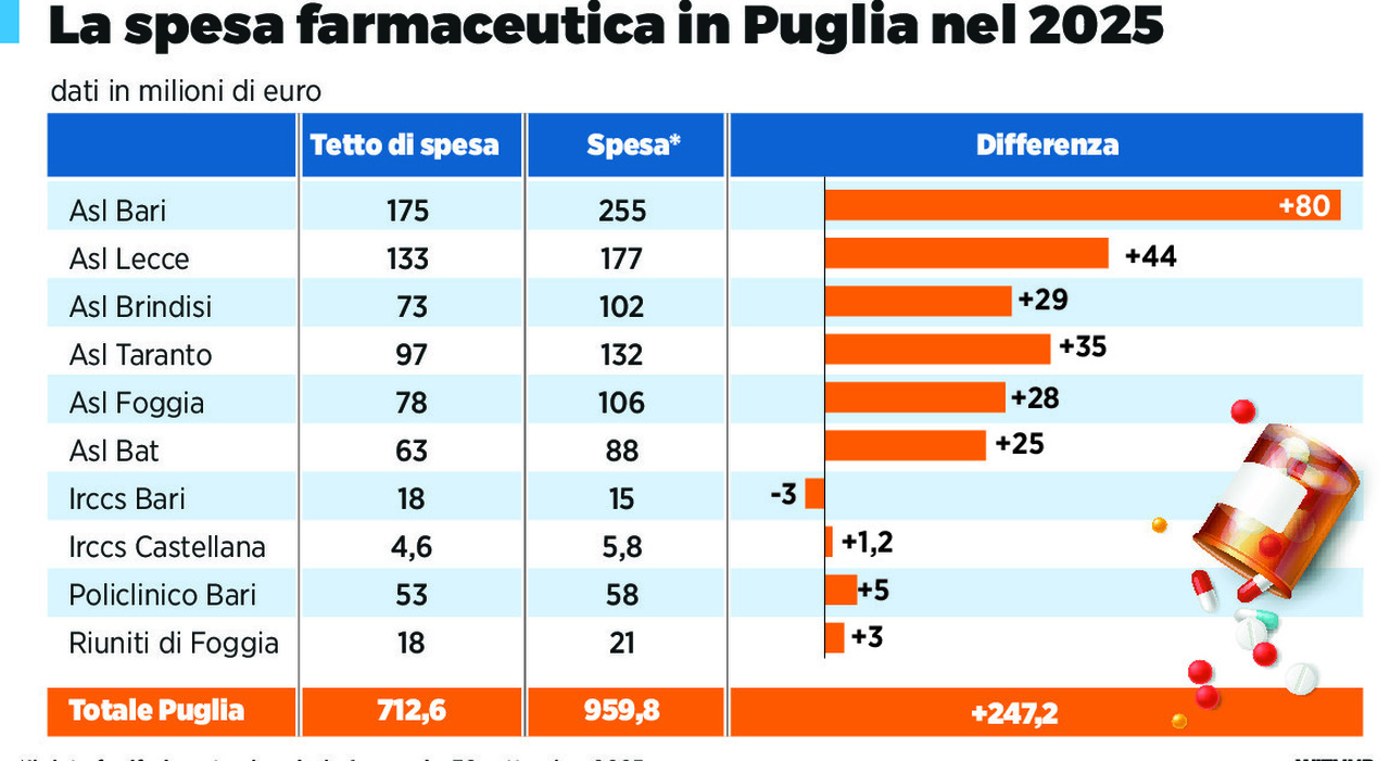 La spesa farmaceutica in Puglia ha superato ogni limite nel 2024, causando un pesante squilibrio nei bilanci regionali. La causa principale risiede nell'aumento dei costi delle medicine e nella maggiore richiesta di trattamenti. Nel 2025, la situazione si è aggravata, con numeri peggiori rispetto all’anno precedente. Le cifre ufficiali mostrano un incremento netto che mette a rischio le risorse disponibili per altri servizi sanitari. La regione si prepara a intervenire per contenere questa tendenza.