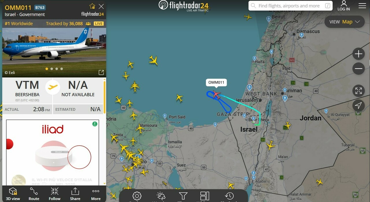 Un Boeing 767-338ER dell'Aeronautica Militare israeliana, noto con il soprannome "Wing of Zion", è partito dall'area di Beersheba e ha operato al largo del Mediterraneo con il nominativo di chiamata OMM011, precedentemente mai registrato. Come riportano Itamilradar e i tracciamento di Flightradar24 l'aereo ha eseguito un circuito di attesa a ovest di Israele. La tempistica, successiva agli attacchi missilistici e di droni iraniani contro il territorio israeliano, conferisce a questo volo un'immediata rilevanza strategica. "Wing of Zion" non è una designazione di flotta, ma il soprannome comunemente usato per l'aereo da trasporto statale israeliano, paragonabile per il suo ruolo simbolico all'Air Force One degli Stati Uniti. 🔗 Leggi su Ilmessaggero.it