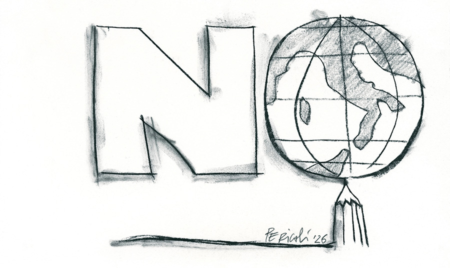 Una matita, quella con cui votiamo nelle urne, che regge sulla punta un mappamondo con in primo piano l’Italia. Tullio Pericoli, uno dei più importanti pittori e disegnatori italiani, si schiera per il No al referendum costituzionale sulla riforma Nordio: lo fa senza dichiarazioni, ma regalando un’opera inedita al comitato “Giusto dire No” promosso dall’Associazione nazionale magistrati, e in particolare alla sezione delle Marche, la sua regione d’origine. Una scelta di campo non scontata, da parte di un personaggio della cultura che finora non si era mai esposto su questioni politiche. Pericoli, classe 1936, ha iniziato la carriera al... 🔗 Leggi su Ilfattoquotidiano.it