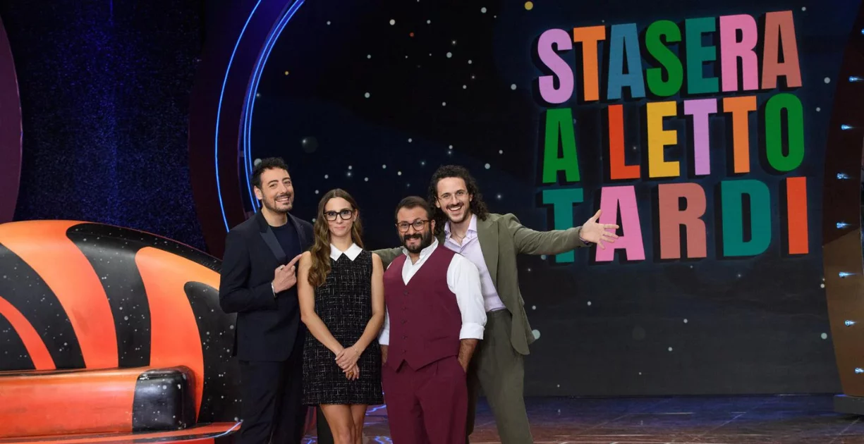 Il collettivo napoletano The Jackal debutta in prima serata su Rai 2 con il nuovo programma intitolato Stasera a letto tardi. La trasmissione vede i membri del gruppo proporre un format che punta a coinvolgere il pubblico attraverso contenuti inediti e un approccio originale. La messa in onda è iniziata questa settimana, segnando il primo esperimento del collettivo nel palinsesto della rete pubblica.