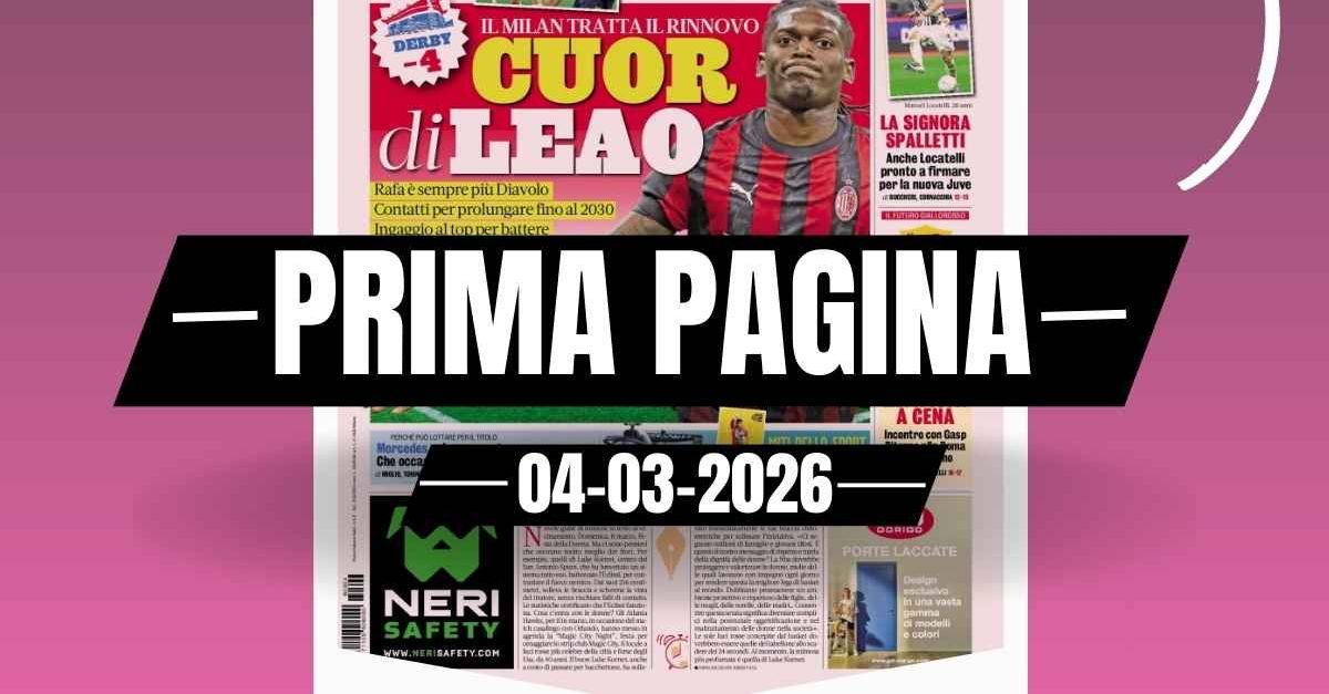 La prima pagina della Gazzetta dello Sport di oggi, mercoledì 4 marzo 2026, riporta che il Milan sta negoziando il rinnovo di contratto con Leao fino al 2030. La trattativa tra il club e l’attaccante portoghese sta proseguendo, senza dettagli sui termini dell’accordo. La notizia riguarda esclusivamente le mosse ufficiali del Milan e il coinvolgimento di Leao nel progetto futuro della squadra.