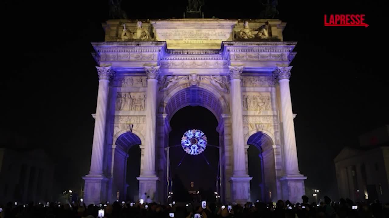 Paralimpiadi il momento dell' accensione del braciere dei giochi di Milano-Cortina