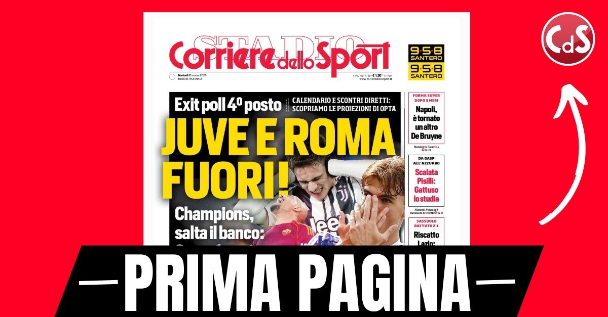 Oggi, il Corriere dello Sport dedica la prima pagina agli exit poll delle Champions League, che indicano il Como come favorito, mentre Juventus e Roma risultano eliminate. La rassegna stampa di martedì 10 marzo 2026 presenta i risultati delle indagini e le reazioni dei tifosi, con particolare attenzione alle squadre coinvolte e alle sfide decisive che si sono svolte nelle ultime settimane.