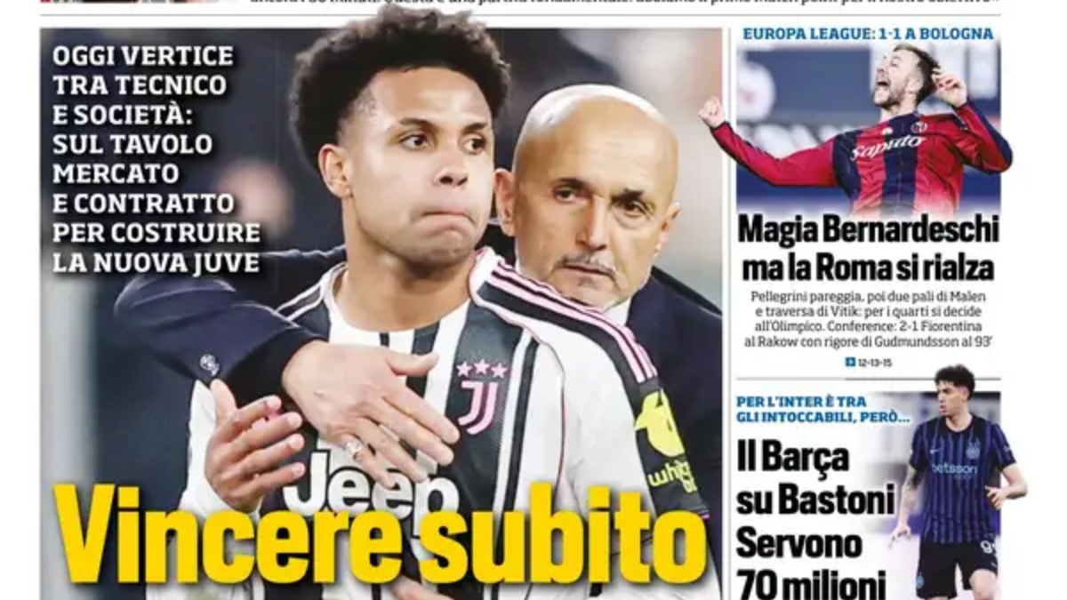 Rassegna stampa Juve: prime pagine quotidiani sportivi – 13 febbraioMcKennie Juve: il Milan studia il colpaccio a parametro zero, ma i bianconeri hanno pronta la contromossa.