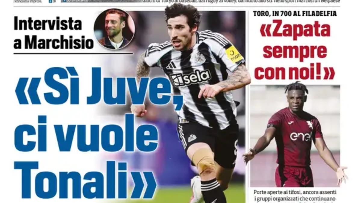 Marchisio consiglia il colpo alla Juve. Tuttosport in prima pagina: Ci vuole TonaliSì Juve, ci vuole Tonali. Titola così in prima pagina il quotidiano Tuttosport, che si sofferma su un'intervista realizzata. tuttomercatoweb.com