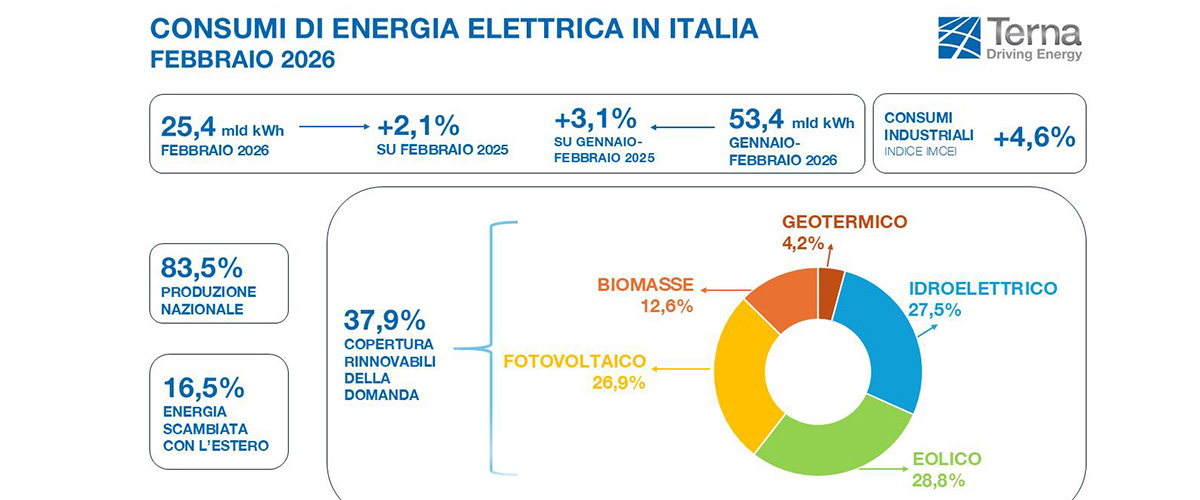 A febbraio, il fabbisogno elettrico nazionale ha raggiunto i 25,4 miliardi di kWh, con un aumento del 2,1% rispetto allo stesso mese dell’anno precedente. Nel frattempo, la produzione di energia da fonti rinnovabili ha registrato un significativo incremento, contribuendo a un aumento complessivo dei consumi energetici nel paese.
