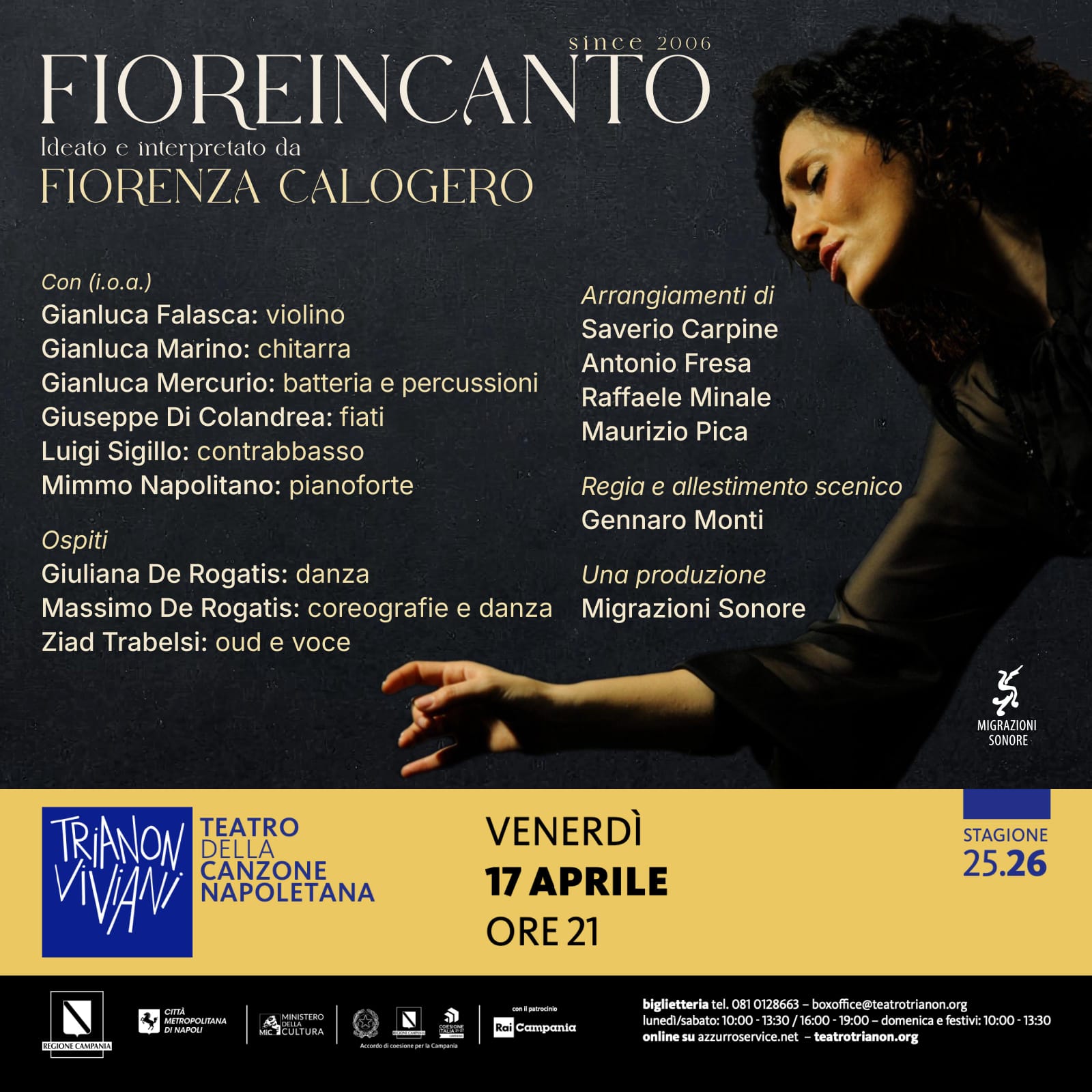 NAPOLI - Fiorenza Calogero celebra i vent’anni di Fioreincanto al Teatro Trianon Viviani. Il concerto-evento che ripercorre 32 anni di carriera tra tradizione napoletana, memoria e nuove sonorità A quasi vent’anni dall’uscita di Fioreincanto, l’album che nel 20 facebook
