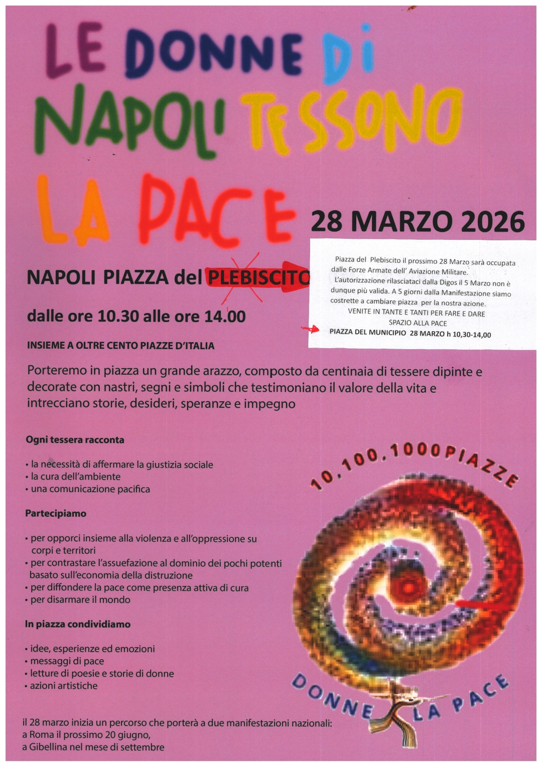 Piazza del Plebiscito ai militari? La pace non si ferma: il 28 marzo a Napoli 10, 100, 1000 Donne per la Pace in piazza MunicipioIl 28 marzo Napoli aderisce a 10, 100, 1000 Piazze di Donne per la Pace. La manifestazione si terrà in piazza Municipio dopo lo spostamento da piazza del Plebiscito. pressenza.com
