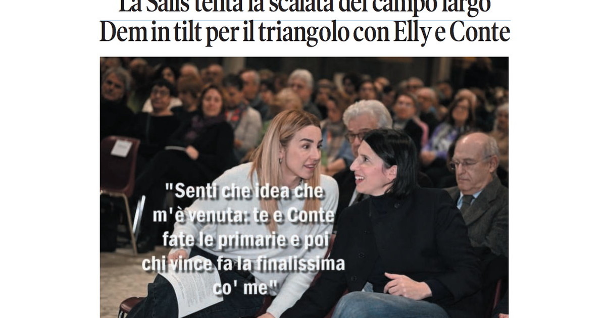 Nella prima pagina de Il Tempo di domenica 12 aprile 2026, compare una vignetta di Osho. La giornalista Silvia Salis ha dichiarato di voler sfidare il centrosinistra e di puntare alla guida del paese. La sua strategia si basa sullo sfruttamento delle tensioni tra i leader politici Elly Schlein e Giuseppe Conte. La notizia ha suscitato attenzione tra gli osservatori politici italiani.