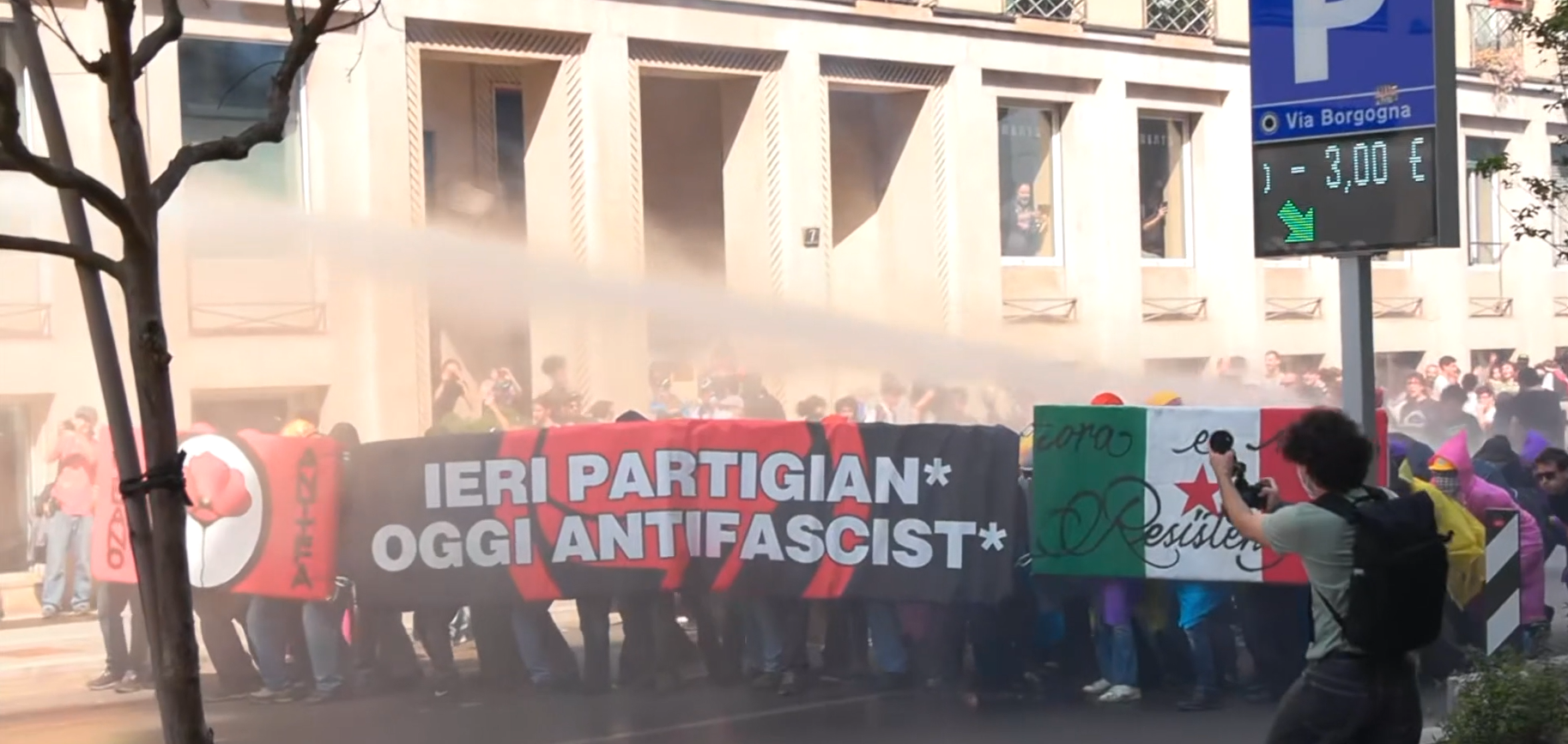 Il corteo degli antagonisti a Milano, la polizia usa gli idranti contro i manifestanti in via BorgognaDopo il lancio di petardi contro le forze dell'ordine dalle prime file del corteo antifa, dai blindati sono partiti i getti d'idranti per fare...