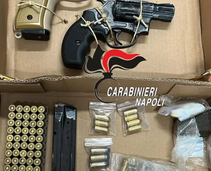 Blitz dei Carabinieri a Brusciano nel quartiere ex legge 219: trovate in un’intercapedine due pistole modificate, 85 proiettili e un panetto di hashish.. Servizio di controllo del territorio per i carabinieri della stazione di Brusciano. La pattuglia percorre le vie del quartiere popolare “ex legge 219” quando in Via De Filippo l’attenzione si concentra su un’area comune antecedente una palazzina. I militari decidono di approfondire il controllo e dopo un’attenta ispezione la scoperta: all’interno di un’intercapedine, ben nascoste, una pistola revolver modificata e una pistola semiautomatica modificata con serbatoio. Insieme alle armi anche 85 proiettili di vario calibro, un caricatore e un panetto di hashish di 47grammi circa.🔗 Leggi su Puntomagazine.it
