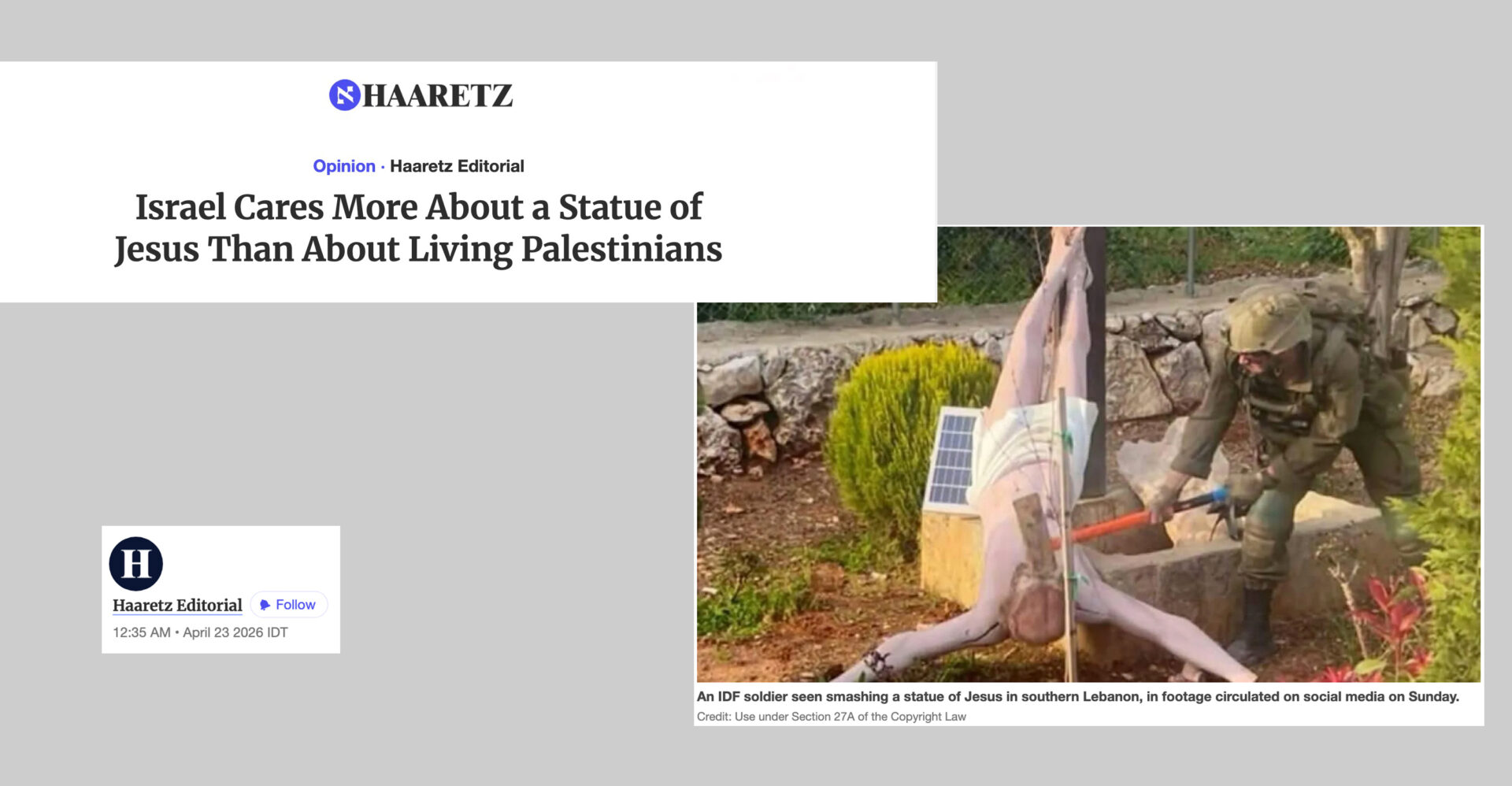 Il crocifisso profanato a Debel, in Libano, ha suscitato indignazione generale. Israele si è scusato, i responsabili sono stati puniti e al posto del crocifisso profanato ne è stato collocato un altro. o forse due, non si capisce bene perché l’IDF afferma di averne eretto un altro, con tanto di foto di un crocifisso adornato di icone; ma i soldati dell’Unifil italiano ne hanno poi collocato un altro ancora, più umile e del tutto simile al precedente. Non si comprende cosa ne è stato del crocifisso dell’IDF. Ma, al di là, alcune considerazioni, iniziando dalla più importante: “Un’indignazione vera non dovrebbe iniziare, né finire, con la distruzione di una statua religiosa, per quanto offensiva possa essere tale azione”, scrive il pastore Munther Isaac su al Mayadeen.🔗 Leggi su It.insideover.com