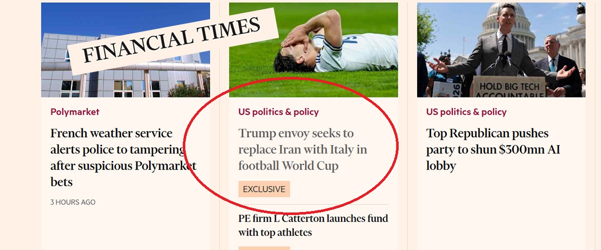 L’ipotesi di un clamoroso ripescaggio dell’Italia ai danni dell’Iran si fa strada sui media, molto meno tra i politici e i tifosi. Anzi, provoca reazioni indignate anche da Teheran, visto che l’ambasciata iraniana a Roma si è affrettata a commentare la notizia del Financial Times sulla proposta che sarebbe arrivata dall’inviato di Donald Trump, Paolo Zampolli, che vorrebbe escludere la Nazionale asiatica, a causa del conflitto in corso con gli Stati Uniti, in favore degli azzurri. Una prospettiva che però, a quanto pare, non piace a Teheran. “Il calcio appartiene ai popoli, non ai politici”, ha scritto su X l’ambasciata iraniana in Italia,...🔗 Leggi su Secoloditalia.it