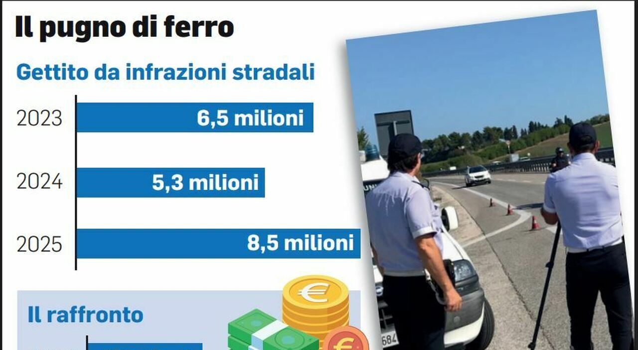 A Ancona, le multe per infrazioni stradali sono aumentate notevolmente nell’ultimo anno, raggiungendo complessivamente circa 8,5 milioni di euro. Rispetto all’anno precedente, le sanzioni accertate sono cresciute di circa 3,2 milioni, passando da 5,3 milioni a oltre il doppio. La differenza di importo indica un incremento delle violazioni rilevate dalle autorità nel periodo recente.