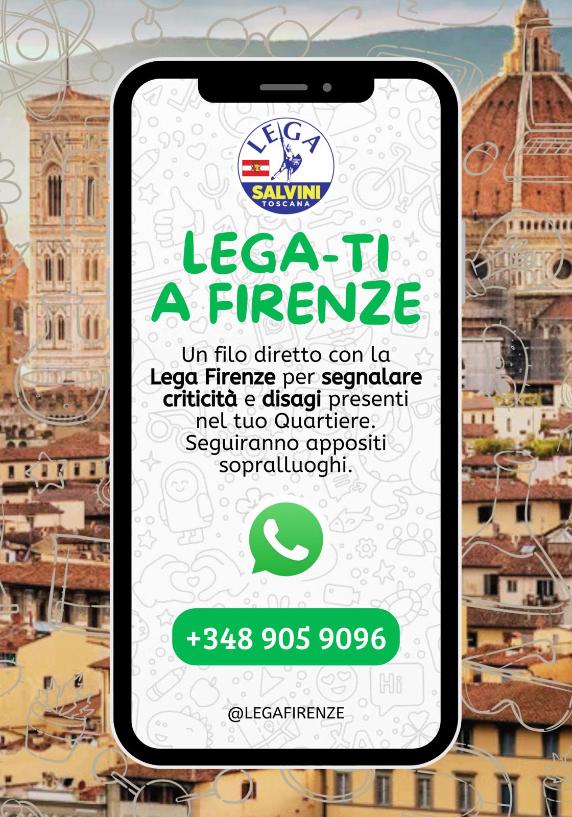 FIRENZE – La Lega – come informa un comunicato – vara una nuova iniziativa a Firenze: “Lanciamo un numero whatsapp per i fiorentini a cui segnalare criticità e disagi. Saremo da pungolo nei confronti dell’amministrazione perché noi siamo Lega-ti a Firenze”. “Riteniamo – continua la nota – che sia importante e doveroso come la politica si rapporti quotidianamente con i cittadini per intercettare le loro necessità. Da questa premessa, nasce, dunque, la nostra iniziativa che prevede di mettere a disposizione un numero da utilizzare, da parte dei fiorentini, per inviarci dei messaggi whatsapp in cui segnalare criticità e disagi presenti nei vari Quartieri della città.🔗 Leggi su Firenzepost.it