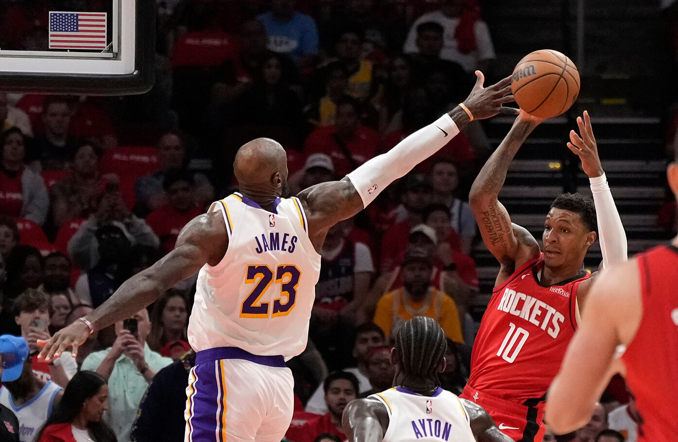 Nba, ai playoff, LeBron trascina i Lakers contro Houston. Vincono Boston e San AntonioI Lakers battono Houston – priva di Durant – in trasferta in rimonta all’overtime 112-108 e si portano sul 3-0 nella serie di playoff Nba.