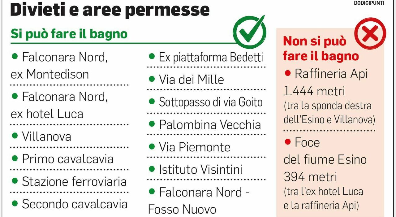 FALCONARA Come da indicazioni regionali, prenderà il via dal Primo maggio la stagione balneare 2026, la cui conclusione è prevista per il 20 settembre. E puntuale arriva anche l’ordinanza della sindaca Signorini che stabilisce i divieti di balneazione nelle acque falconaresi. Due le zone dove anche per il 2026 viene interdetta la balneazione. Le aree La prima, quella immediatamente adiacente alla raffineria Api. In particolare, sarà vietato fare il bagno lungo il tratto compreso fra la sponda destra del fiume Esino e la spiaggia di Villanova, per una lunghezza complessiva di 1.444 metri. «Per motivi di sicurezza» specifica l’ordinanza. Il divieto porta con sé le solite avvertenze: non saranno effettuati i controlli microbiologici dell’acqua da parte dell’Arpam e non verrà ovviamente attivato alcun servizio di salvamento.🔗 Leggi su Corriereadriatico.it