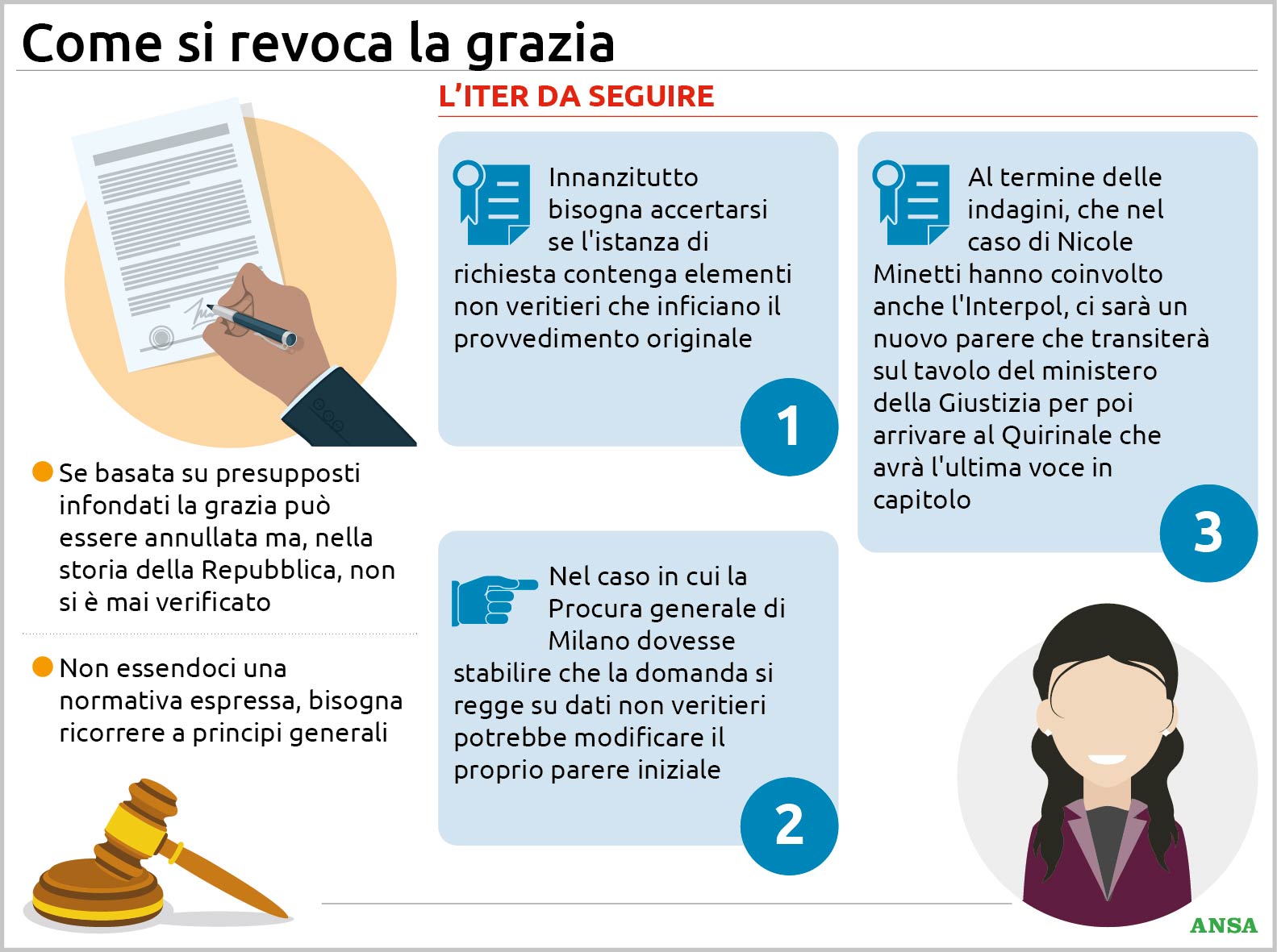 Temi più discussi: Come funziona la grazia e perché il caso di Nicole Minetti ha messo in difficoltà perfino il Quirinale; Grazia del presidente della Repubblica, come funziona e in quali casi può essere revocata; Dalla domanda ai pareri: come funziona la grazia e perché può essere revocata; La grazia, la supposta falsità e la richiesta del Colle: perché è scoppiato il caso Minetti.