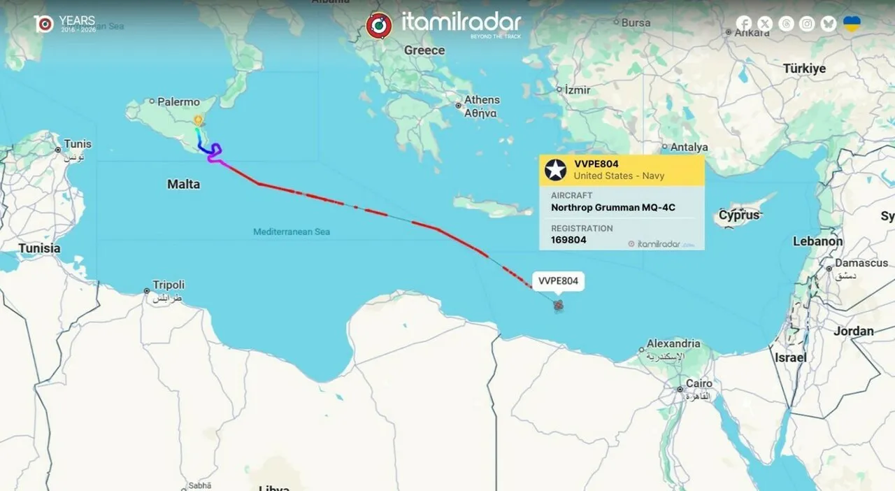 Negli ultimi giorni diversi MQ-4C Triton statunitensi sono decollati dalla base di Sigonella, in Sicilia, per missioni di ricognizione di lunga durata dirette verso il Mediterraneo orientale e, con ogni probabilità, fino all’area del Golfo. I tracciamenti dei voli indicano un’attività insolita che potrebbe segnalare un adattamento temporaneo nelle operazioni di intelligence della Marina degli Stati Uniti.
