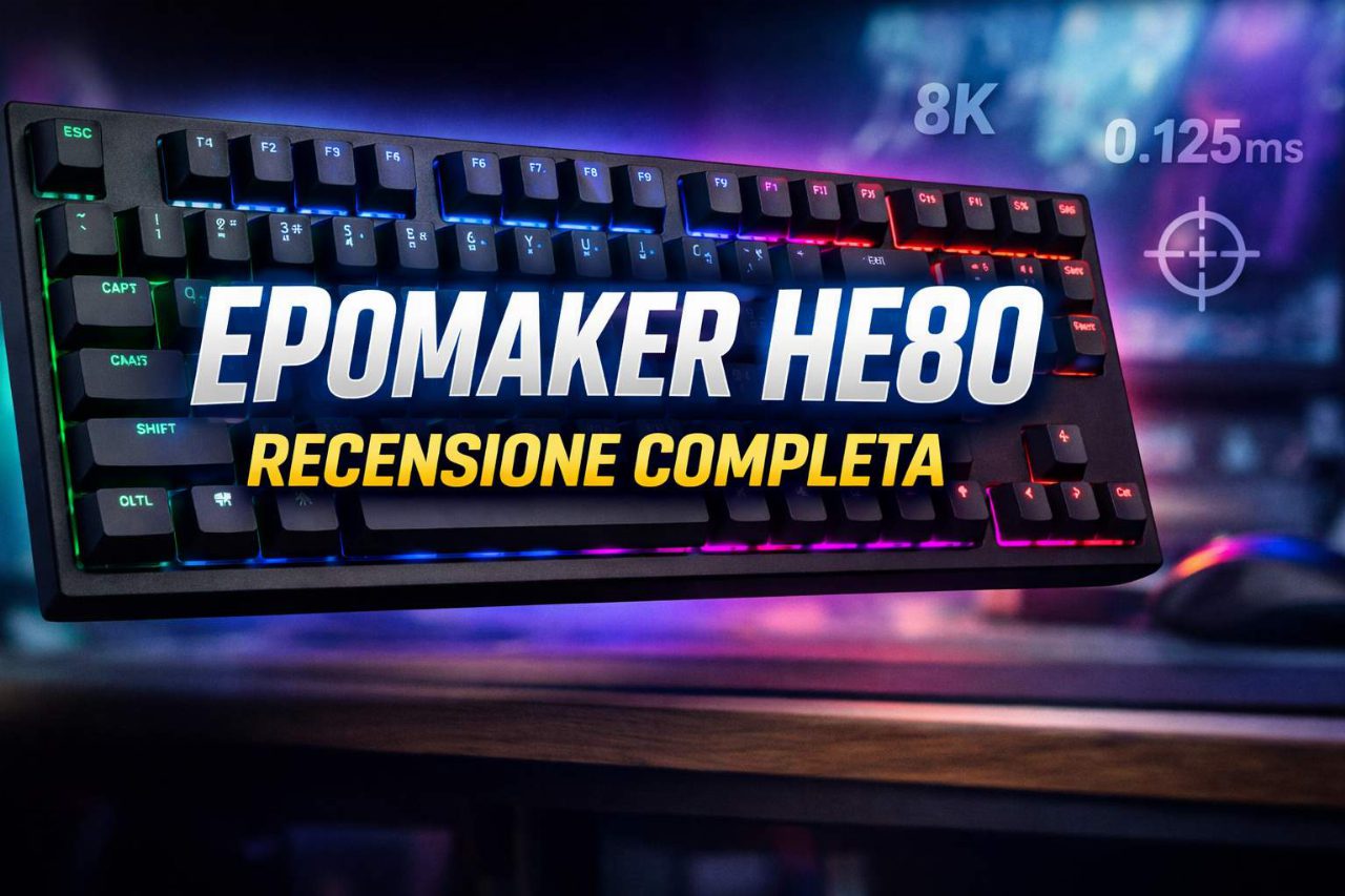 EPOMAKER HE80 recensione completa: tastiera Hall Effect con 8K polling, latenza bassissima e attuazione regolabile.